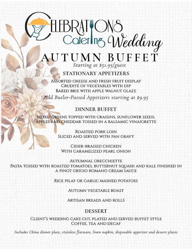 Celebrations has carefully-planned wedding buffet menus designed for a variety of receptions.