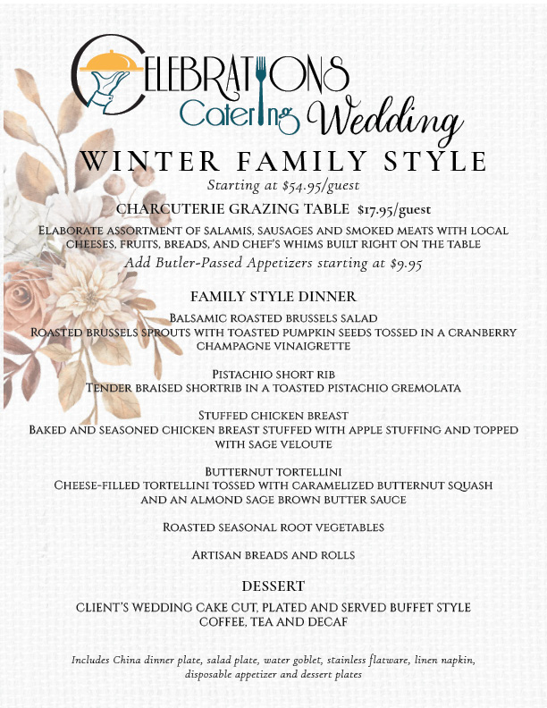 Family-style catering with Celebrations provides an extraordinary meal with the comfort of home!